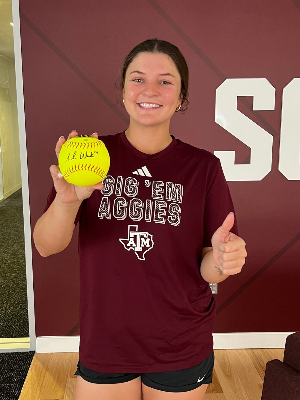Signed softball from Texas A&M infielder Micaela Wark.