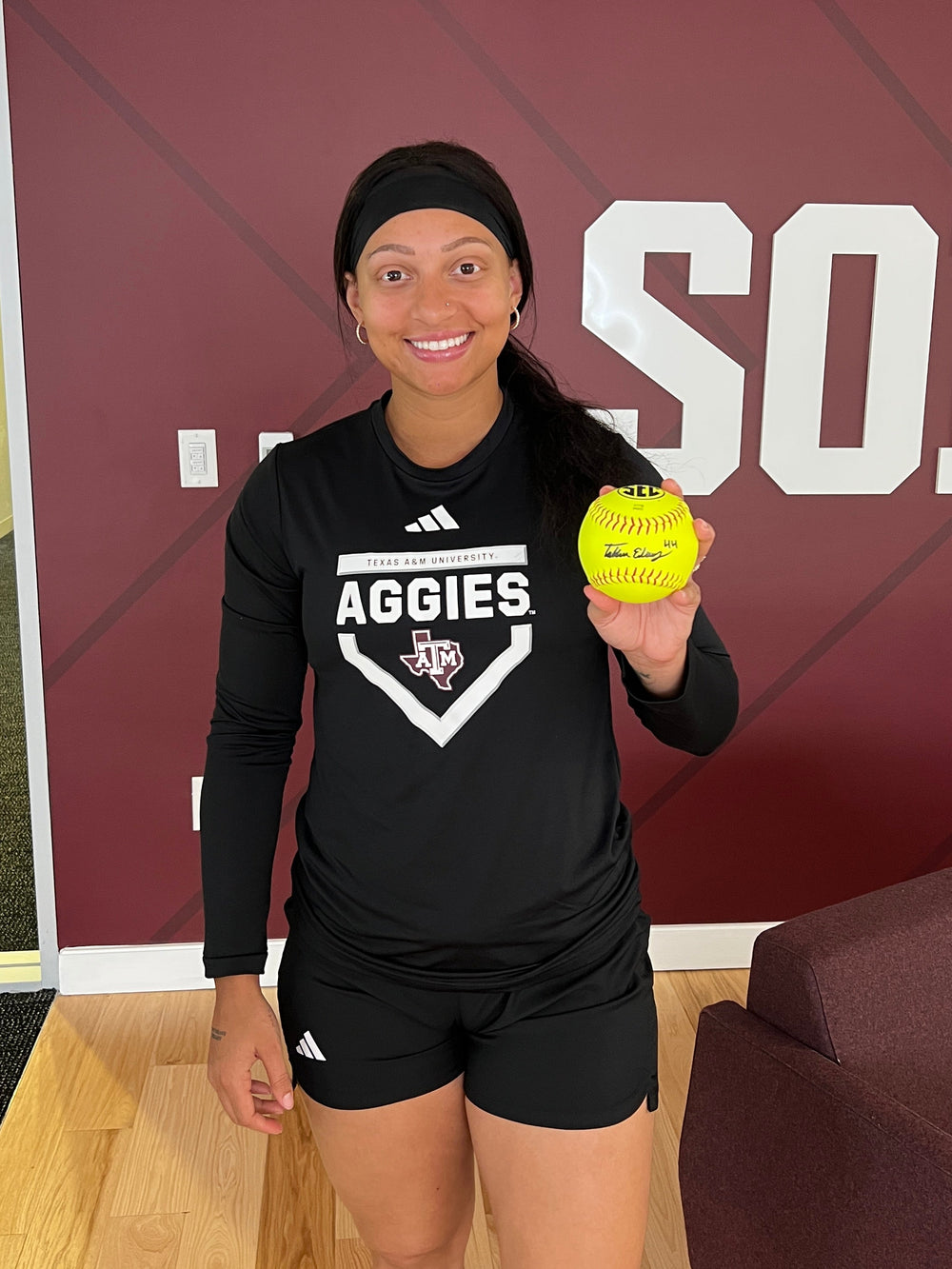 Signed softball from Texas A&M infielder Tallen Edwards.